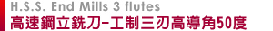高速鋼立銑刀-公制三刃高導角50度